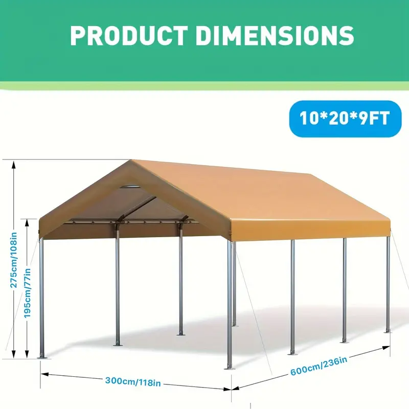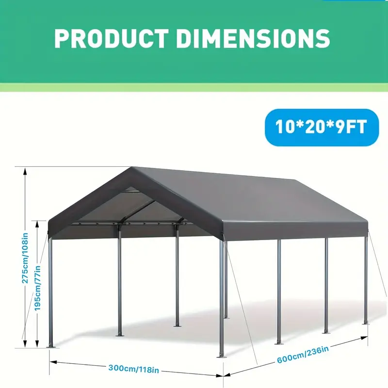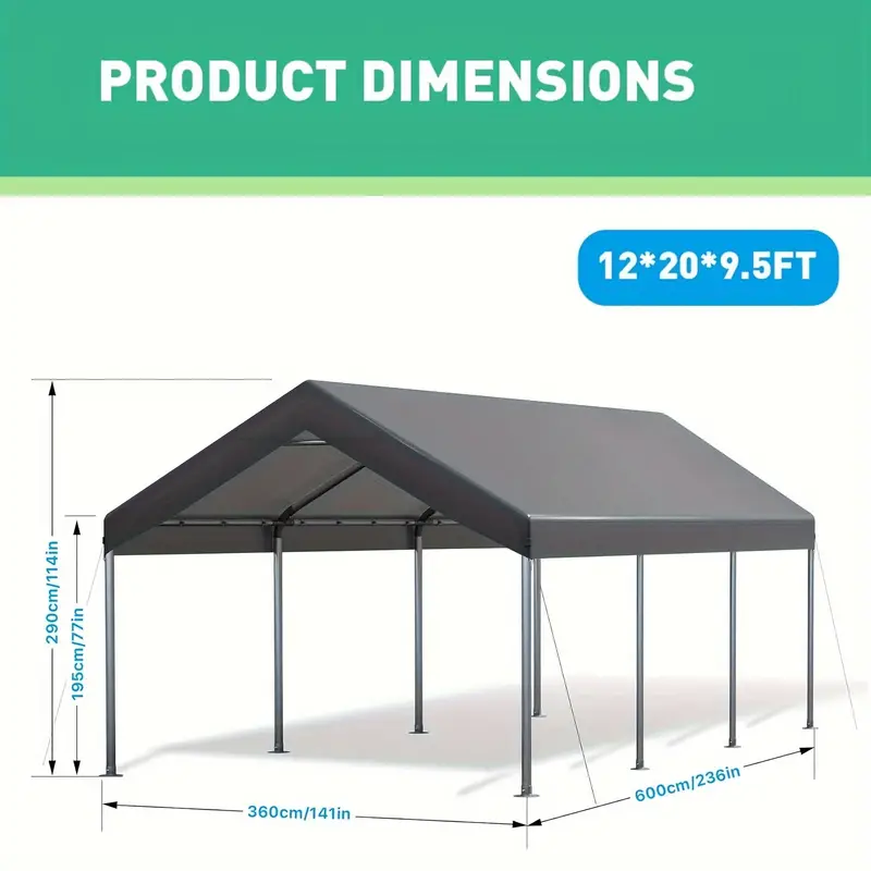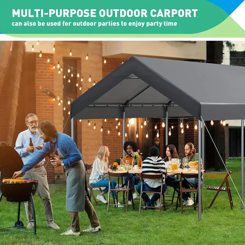 [SOLUCIÓN MULTIUSOS PARA EXTERIORES] Más allá del almacenamiento de vehículos, esta espaciosa marquesina sirve para diversas necesidades. Ideal para eventos al aire libre como fiestas, bodas y ferias comerciales, ofrece una protección y un refugio versátiles. Adecuada para coches, barcos, camiones y más, esta carpa para exteriores es una solución práctica y adaptable para una variedad de ocasiones.