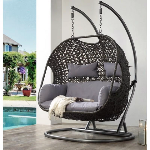 Sumérjase en el mundo de los cuentos de hadas, la fantasía de la ciencia ficción o las aventuras biográficas históricas y anide en esta divertida silla mecedora de porche con forma de huevo. Esta silla tiene un marco de acero sólido con recubrimiento de polvo y mimbre de ratán PE tejido a mano para todo clima de grado comercial que no se astillará como el ratán natural. Los cojines están confeccionados con tela de exterior y rellenos de un suave diseño de algodón transpirable. La combinación de estos materiales asegura la resistencia a la intemperie de la silla y la comodidad con estilo. Se adapta a dos personas y tiene suficiente espacio para cualquier posición que desee. Siéntese con lujosa comodidad rodeado de la tranquilidad y la belleza de su patio trasero, o lea un buen libro en el interior con esta cómoda silla colgante.