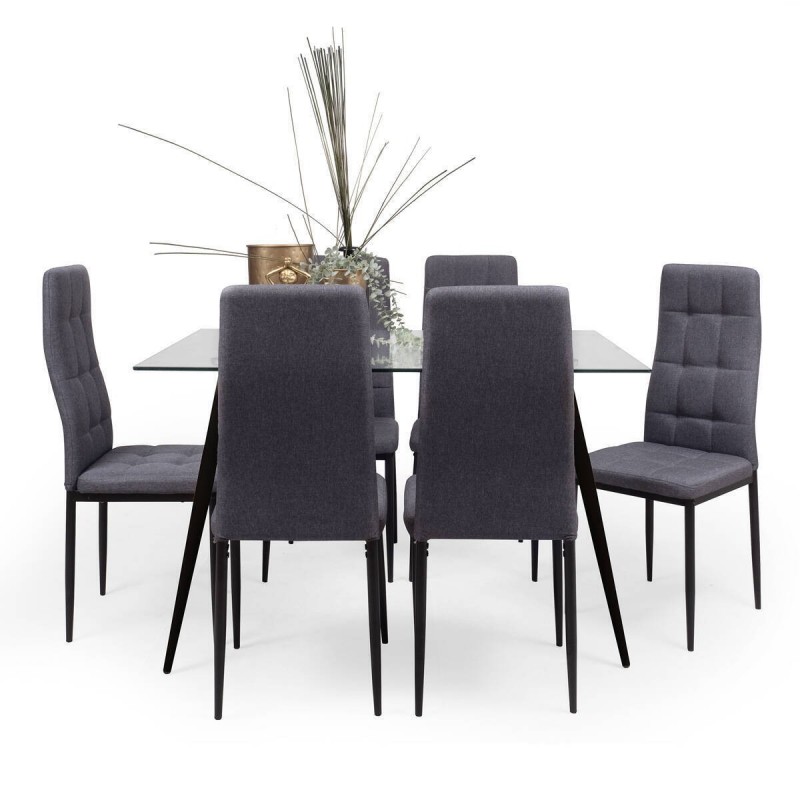 · Tapizadas en tela color gris oscuro con diseño capitoné en respaldo y asiento