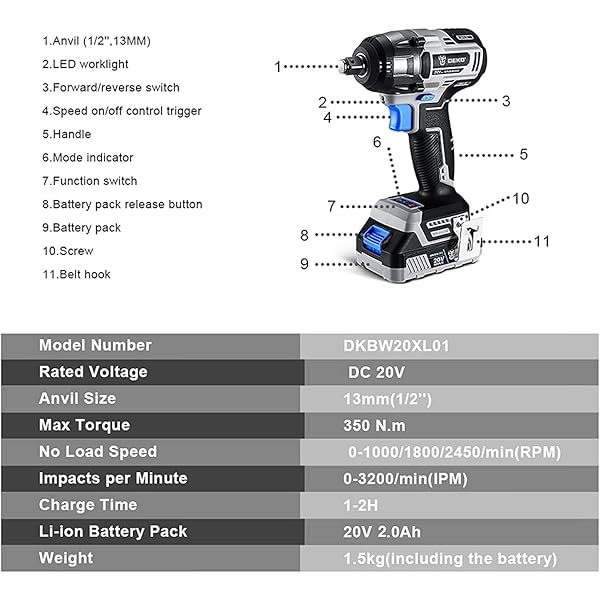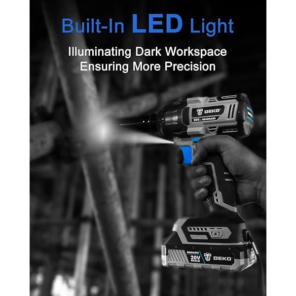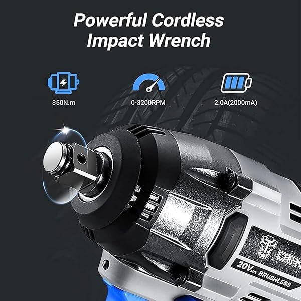 【Package Included】1 * DEKOPRO Cordless Drill/driver Set; 1 * DEKOPRO Cordless Wrench Set;1 * 20-Volt 2.0Ah Batteries; 1 * 20-Volt 4.0Ah Batteries; 1 * Fast Charger; 1 * Storage Bag; 1 * User Manual; 1 * 1 Year Warranty. 【Lightweight and Ergonomic】Rubber over-mold handle with ergonomic design offers maximum user comfort and less vibration, it gives a more secure grip for enhanced user control, lightweight reduces user fatigue, and empower operators work at confined space. 【2Pcs BATTERIES&LED WORK LIGHT】Cordless drill with 2pcs 2Ah and 4Ah 20V large capacity Lithium-Ion batteries and fast charger, which keep it running continuously and improve efficiency. Built-in LED work light, which helps operators to illuminate the work area and working in the dark easily. 【1/2 Inch Brushless Impact Wrench】The brushless wrench has strong power and features 3 speeds (1000/1800/2450r/min) to tighten bolts and 2 modes to loosen bolts. In forward direction, divided into low, medium and high three gears, the faster the speed, the greater the torque. This 20V impact wrench delivers 350N.m of max torque and 3200IPM of impacts rate,it's equipped with an advanced all-copper brushless motor to provide a more stable and efficient work experience. 【1/2 Inch Brushless Impact Drill】DEKOPRO cordless drill with the max 550 In-lbs torque fits a range of various applications. High performance brushless motor ensures more stable.Brushless cordless drill provides 2 speed transmission(0-450 RPM & 0-2000 RPM) and set with torque gear of 21+3 helps you to create perfect and precise holes on kinds of wood, metal, ceramic tile and plastic.
