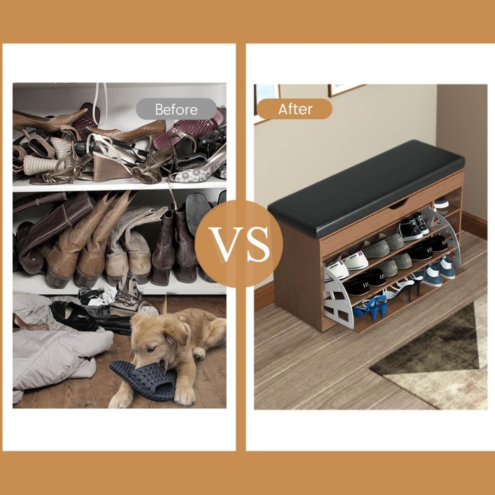 - Entryway Bench With Shoe Storage:Exquisite storage appearance,not unsightly wire rack device,can perfectly protect your privacy,and there are soft cushions at the top to provide convenience when you wear shoes and avoid falling.
