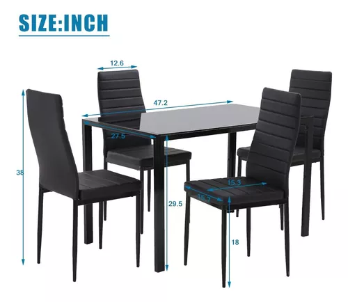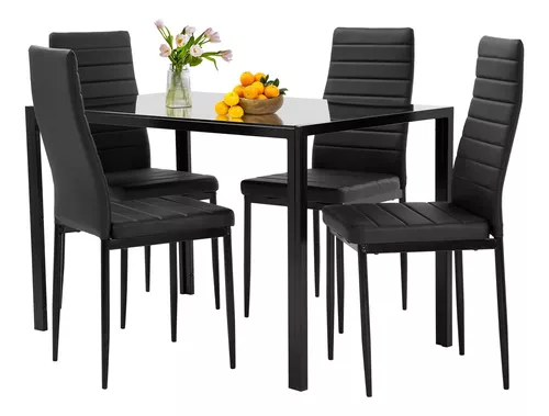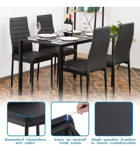 Cojines tapizados mejorados: este juego de comedor incluye 1 mesa y 4 sillas tapizadas con piel sintética.