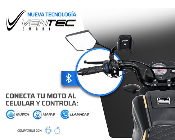 Por su suspensión delantera de horquilla hidráulica y su suspensión trasera de amortiguador con resorte, además de sus frenos de tambor, cualquier recorrido hecho con tu motocicleta Vento se va a convertir en la prueba de que hay pasión y energía más allá de tu cochera.