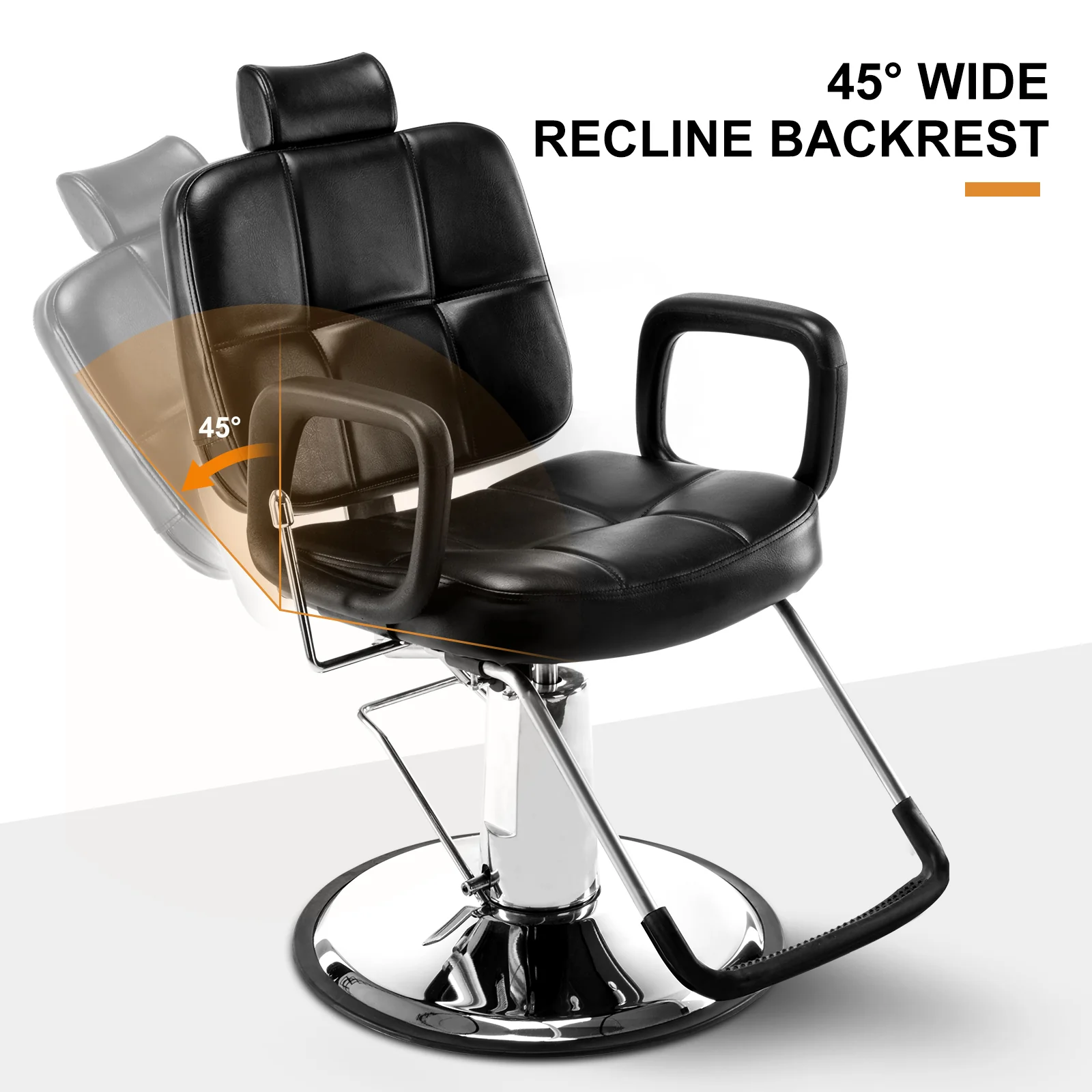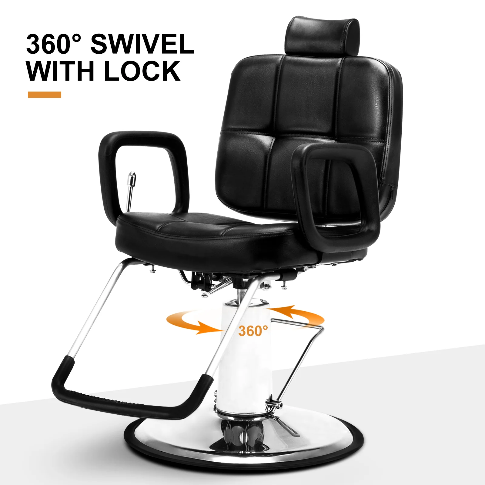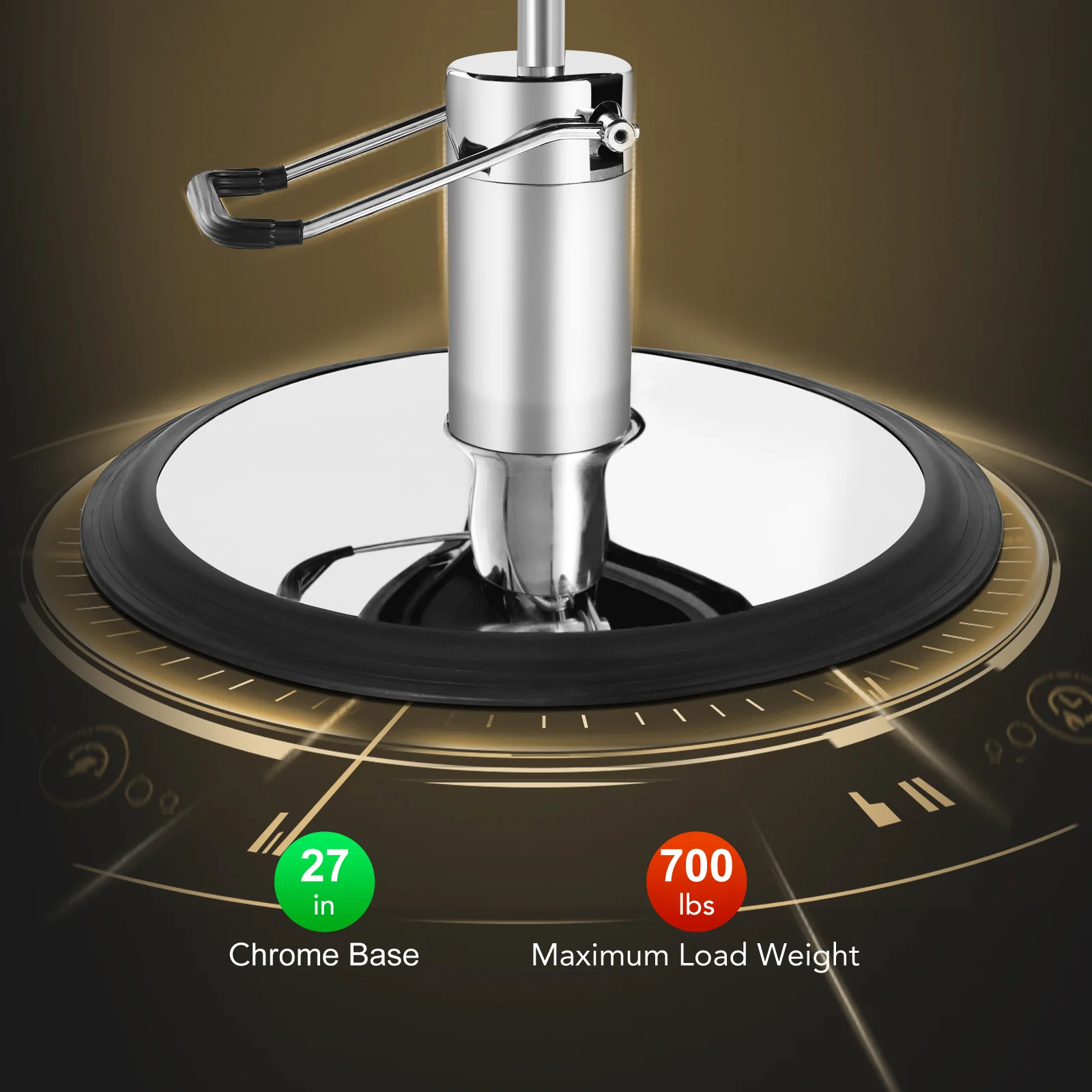 Specifications: Material: Heavy Duty Steel And PVC Leather Seat Dimension: 19 " X 18 " Back Dimension: 18 " X 16 " Headrest Dimension: 7 " X 4 " Diameter Of The Round Base: 22 " Size:33.5" x 23.60" x 39" Weight Capacity: 350 Lbs Package Includes:1×Hydraulic Barber Chair