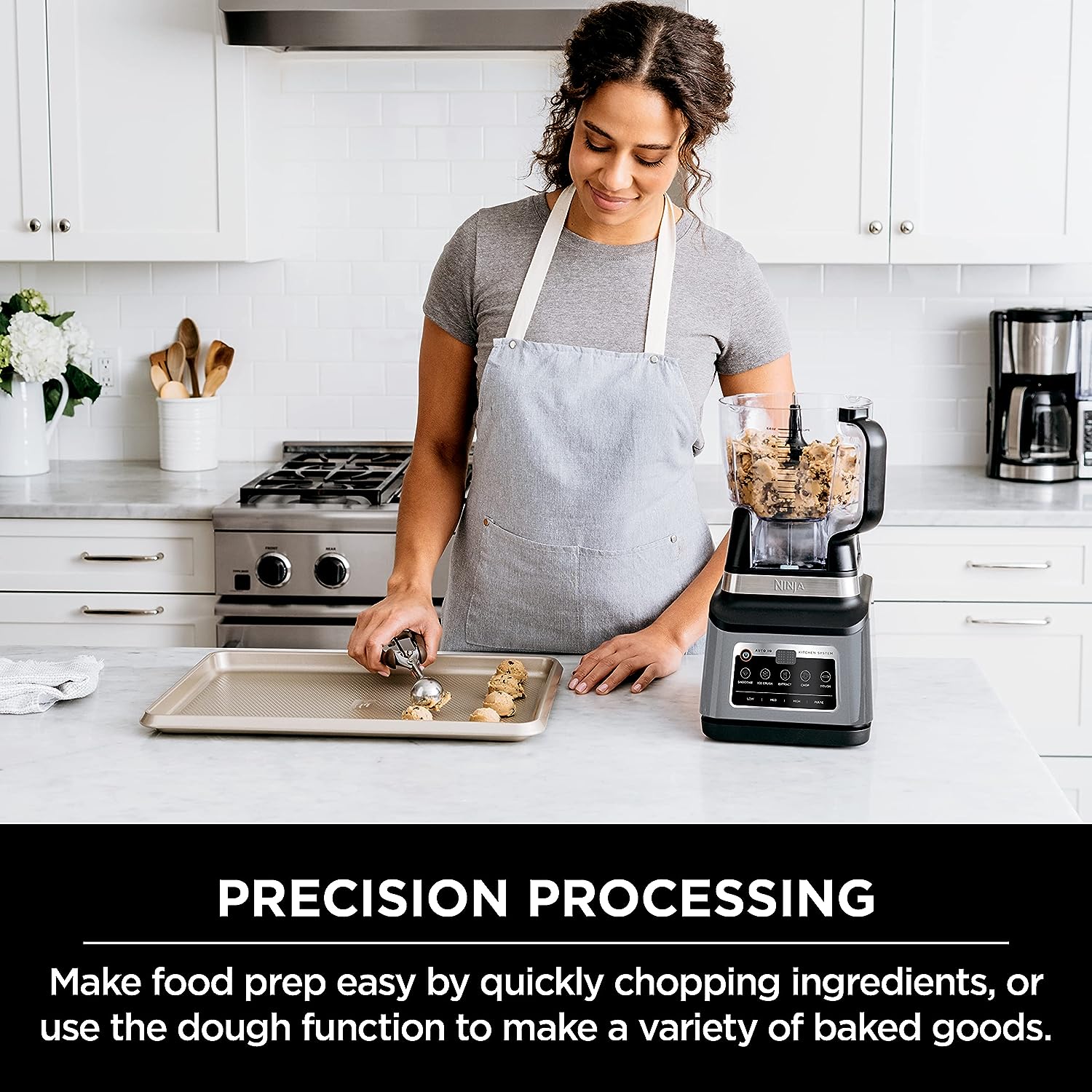 Con el sistema de cocina Ninja Professional Plus, puedes mezclar en la jarra o en las tazas de una sola porción. Además, puedes hacer de todo, desde aderezos, purés y más en el tazón del procesador de alimentos.