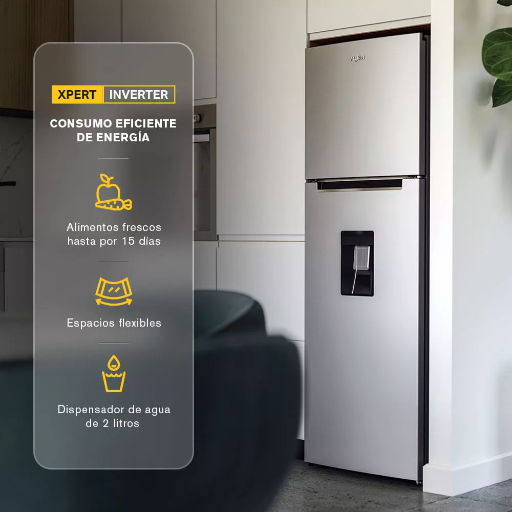 El Refrigerador Whirlpool 9 Pies Top Mount Xpert Inverter Color Plateado es la combinación perfecta de estilo y funcionalidad, ofreciendo características innovadoras que harán tu vida más fácil. ¡No esperes más y adquiere este increíble refrigerador para disfrutar de la mejor experiencia de refrigeración en tu hogar!