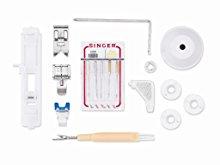 All-purpose foot, zipper foot, buttonhole foot, button sewing foot, seam ripper / lint brush, quilting guide, needles, bobbins, screwdriver, auxiliary spool pin, spool pin felt, soft-sided dust cover. Power cord/foot control, instruction manual.